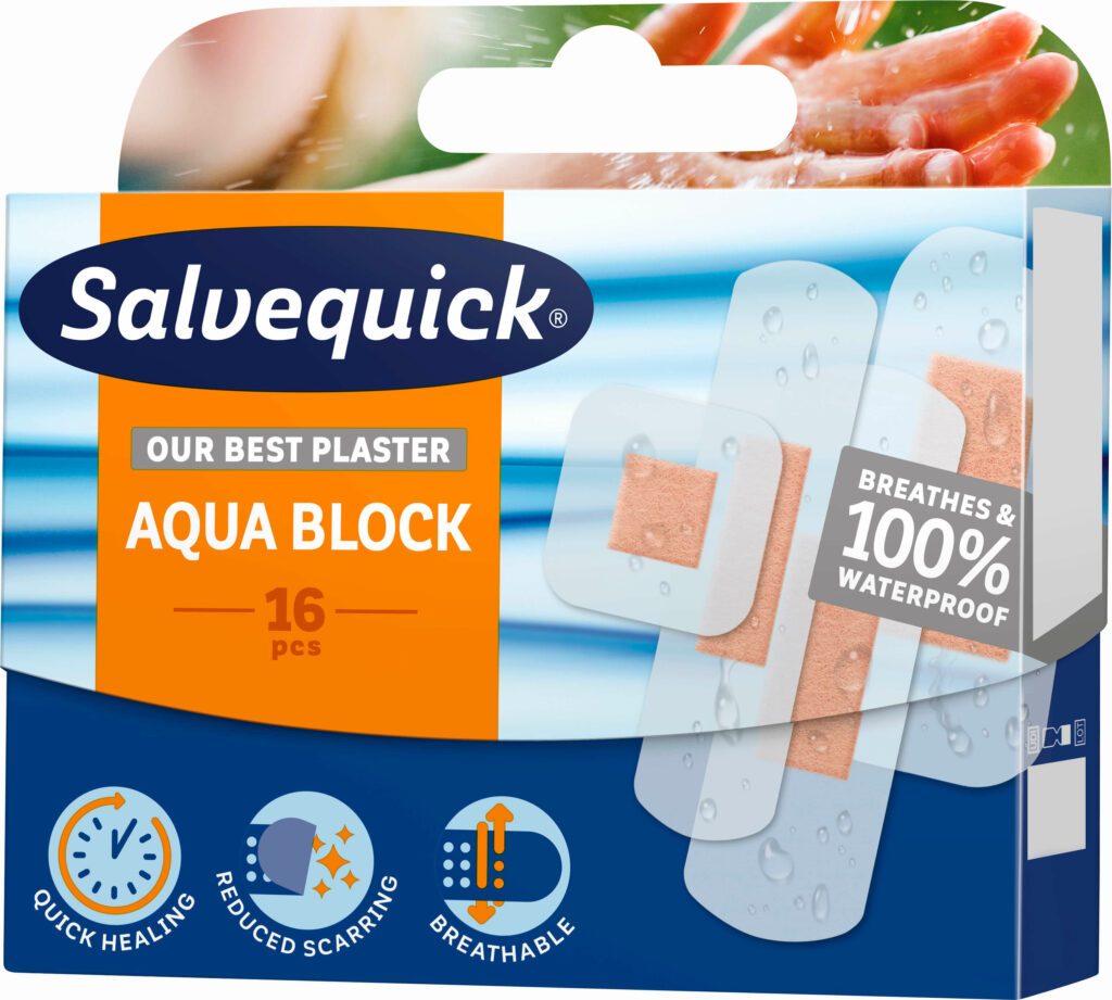 Aqua Block can be used for most types of minor wounds, for example grazes and superficial skin cuts. Since the plaster is completely waterproof and fits securely on the skin it can handle the toughest challenges such as playing outdoors, training, showering and swimming.